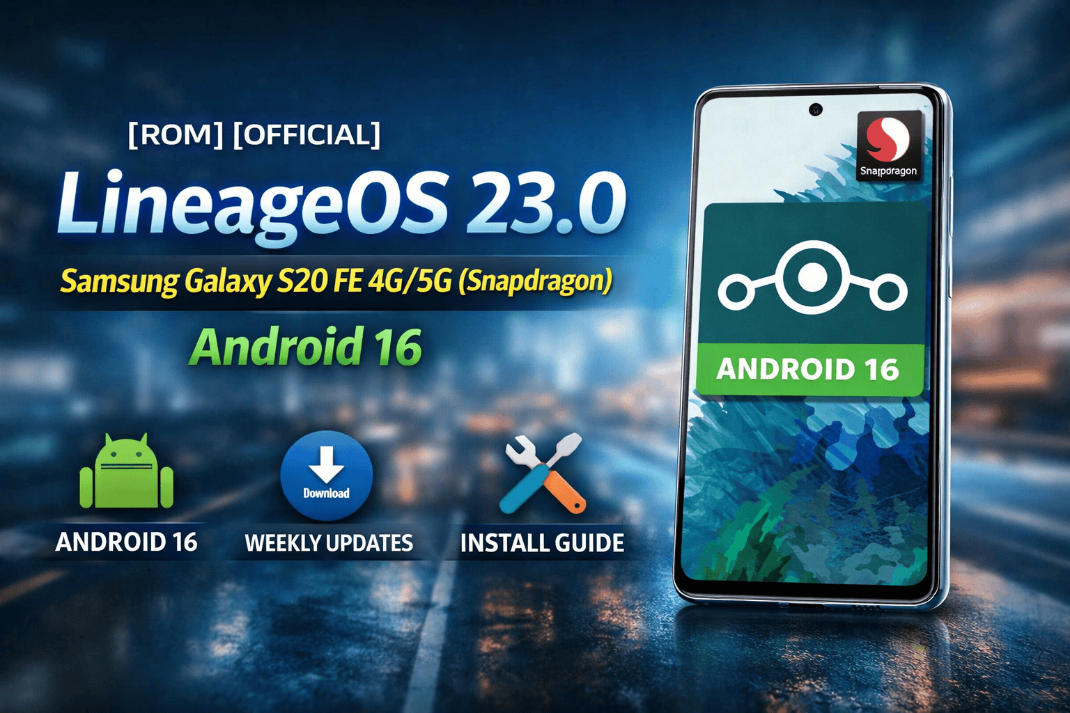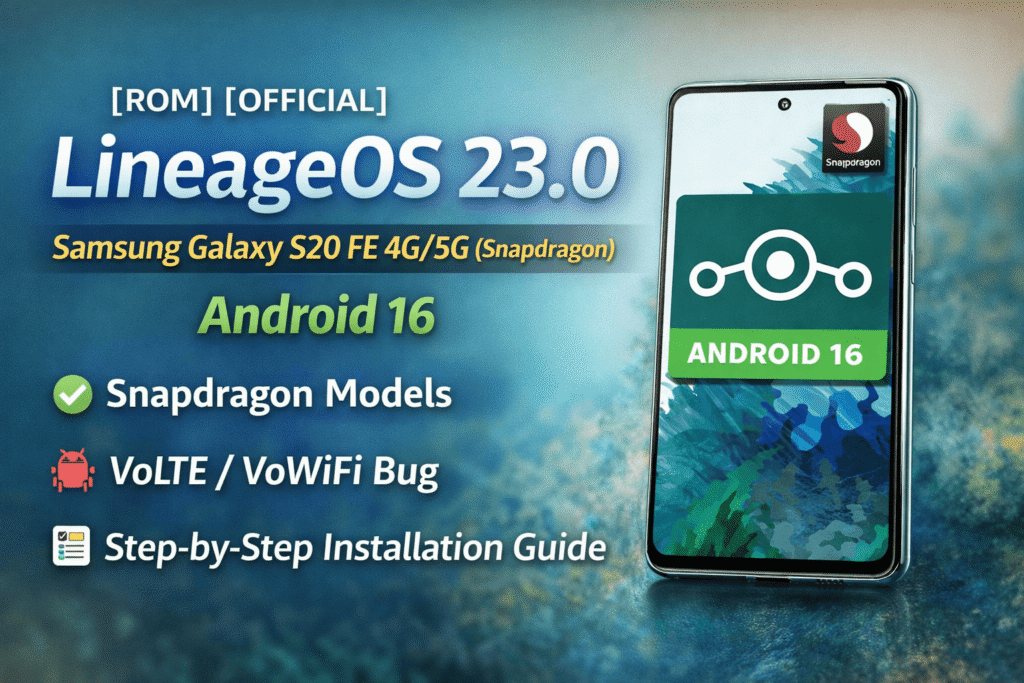 LineageOS is one of the most popular custom Android ROMs in the world. It is known for its clean interface, stability, and long-term support. With the release of LineageOS 23.0, users of the Samsung Galaxy S20 FE (Snapdragon variants) can now enjoy a fresh Android 16 experience through an official weekly build.