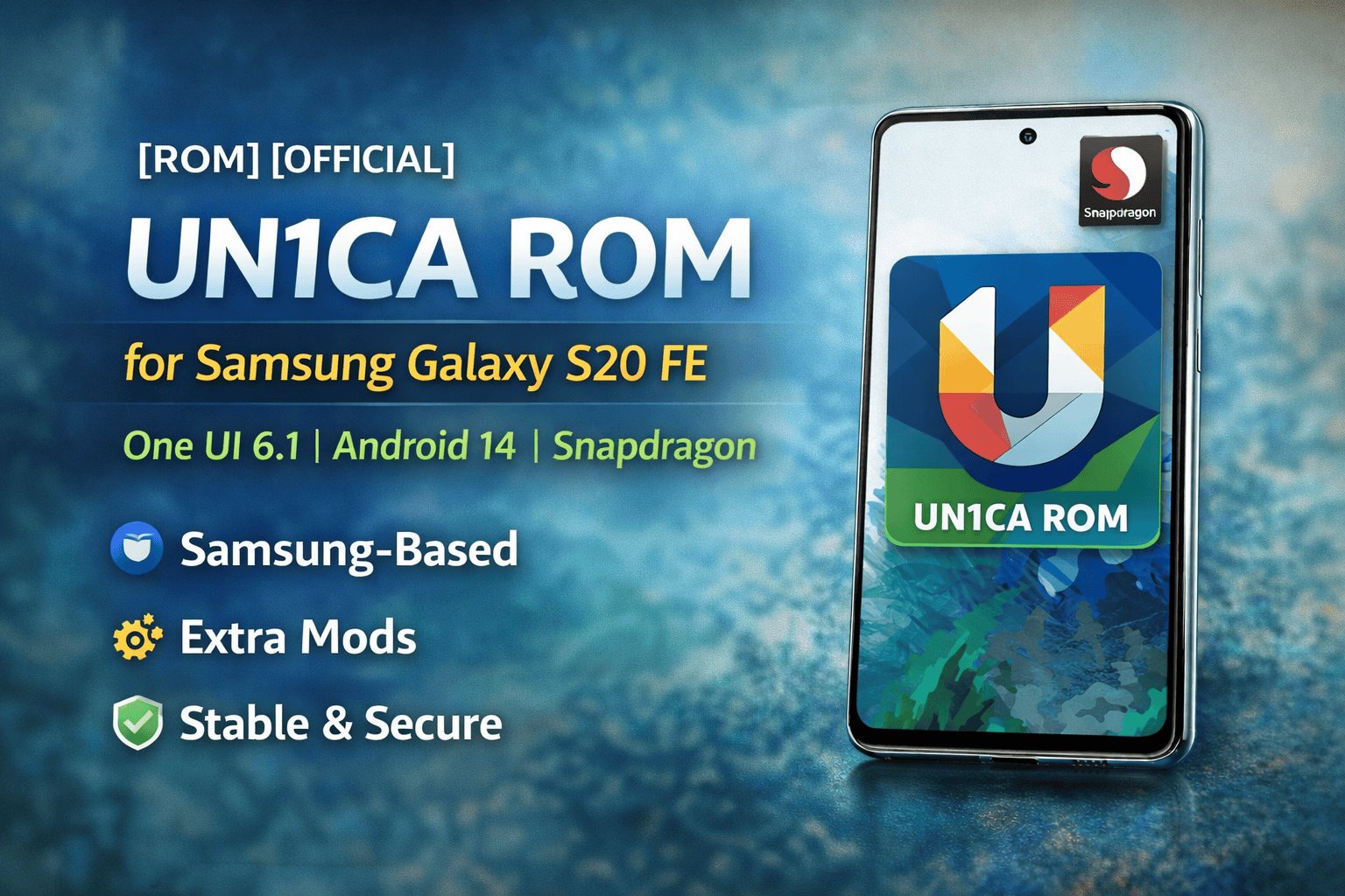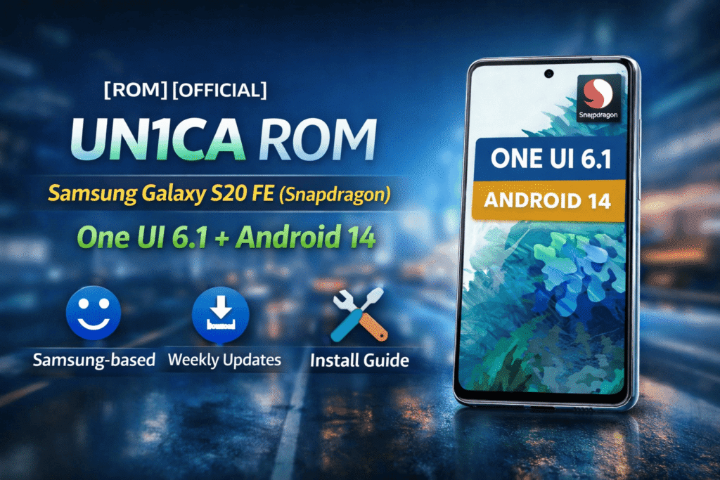 UN1CA ROM is a Samsung-based custom ROM developed for Galaxy devices, including the Samsung Galaxy S20 FE (Snapdragon variants). This ROM is made for users who want the latest Samsung One UI experience with extra features, better performance, and fewer system restrictions.